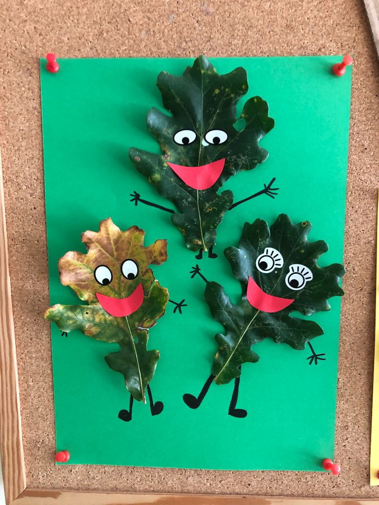 They made their very own “Leafy-Weirdos” – funny and imaginative portraits using autumn leaves.